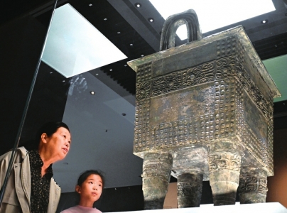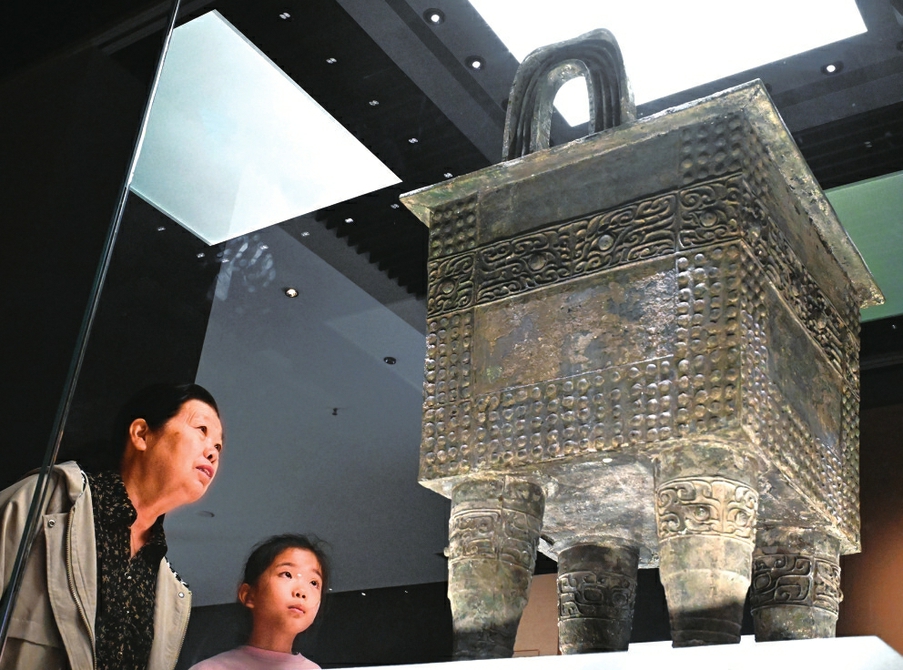 游客在参观杜岭一号方鼎。