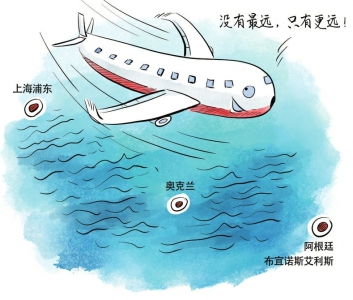 12月4日凌晨2时19分,中国东航MU745航班搭载着282名旅客从上海浦东国际机场起飞,经新西兰奥克兰最终到达阿根廷布宜诺斯艾利斯。这条横跨东西半球与南北半球、航程约两万公里的航线,刷新了全球最长单程航线的纪录,并将中国至南美的航程缩短四小时以上。这条单程距离约两万公里的全球最长商业航线架起了一座串联中国与大洋洲和南美洲三地之间的“空中桥梁”。 据央视财经