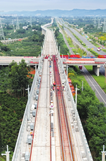 华西都市报讯(记者杨芮雯)12月10日,记者从成都轨道集团获悉,9日下午,市域(郊)铁路成眉线秦皇寺站至官塘站区间完成铺轨。这是成眉线首个完成铺轨的区间,标志着线路建设已逐渐转入轨道铺设与机电安装的新阶段,为后续供电、通信信号接入等工序的推进奠定了基础。