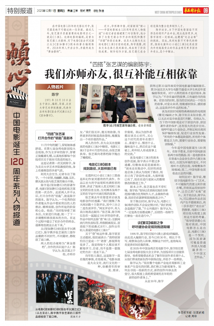 从《坚如磐石》到《狙击手》《满江红》,陈宇携手张艺谋的三部作品横跨不同时代、不同题材,都收获了高口碑。
