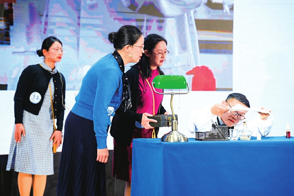 西南民族大学化学与环境学院团队则上演了《密信风云》:一张看似空白的纸,喷上碘液后就浮现出数字——原来密信用淀粉溶液书写,淀粉遇碘变蓝是经典显色反应;而另一张“无字天书”用火烘烤就会显形,这是因为书写材料是牛奶,其中的糖类受热碳化,颜色就会加深,同时还会散发焦糖味。