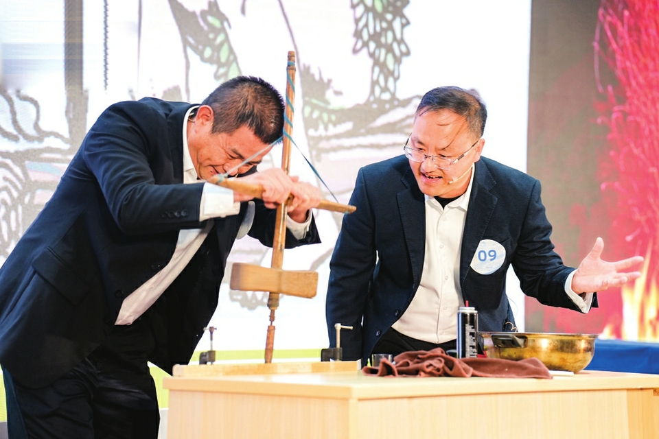 在现场,来自攀枝花的两位物理老师带来一场“火”的盛宴,他们现场演示钻木取火,用摩擦生热引燃材料架,并且做了烟雾扩散等实验,将“防火、灭火、防烟”知识融入紧张刺激的实操中,赢得阵阵掌声。