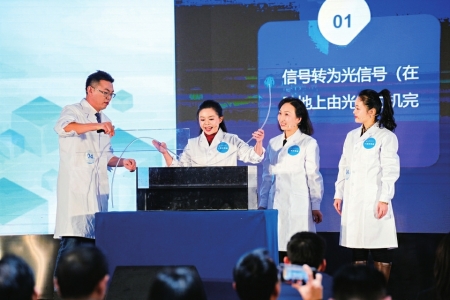 如何让走直线的光翻山越岭,点亮蓝色星球?“光之信使”队拿出了他们的神秘武器——光纤。利用光的全反射原理,让光纤成为光的超级容器,让光信号沿着光纤传播。正是这一原理,支撑起今天的互联网、5G乃至“信息丝绸之路”。