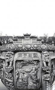 匠人比任何人都更懂这些石头。在他们手中,石头从长久的沉默中苏醒。他们运用两种技法:一曰深雕,让英雄、游龙、栖凤从石中浮现,轮廓深邃几欲脱离石体;一曰透雕,穿透整块顽石镂出万千纹样,甚至容许天光在坚石内部翩跹流转。匠人们与其说在雕刻,不如说在聆听,他们通过深雕与透雕,唤醒那些沉睡于石材记忆中的形态:游雾蟠龙、忠义圣贤、云纹舒卷。这仿佛一场点石成金的庄严仪式,匠人们化顽石为数百年传说,凝厚重为文明低吟。