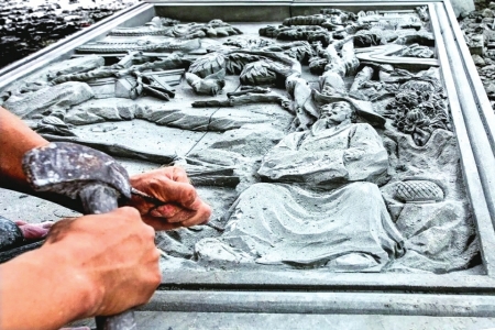 The craftsmen read these stones better than anyone. Under their hands, the stone stirs from its long silence. And two techniques are specially employed here: Shen Diao, or deep relief, where figures of heroes, dragons, and phoenixes emerge from the stone with depth that they seem almost detached; and Tou Diao, openwork carving, which pierces entirely through the stone to create intricate patterns, even allowing light to dance through the solid rock. Through deep relief and openwork carving, they do not so much carve as they listen, liberating forms sleeping in the stone’s memory: dragons coiled in mist, paragons of loyalty, the quiet geometry of clouds. It is a kind of alchemy, turning mineral into myth and weight into whispering culture.