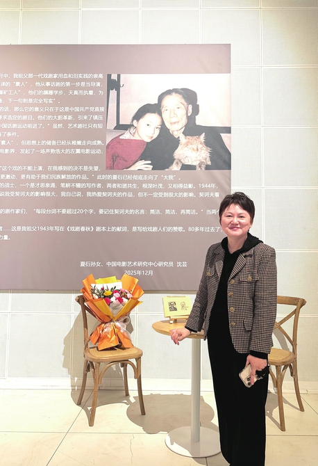 12月4日,“剧影双峰——夏衍的戏剧与电影”展览于中央戏剧学院昌平校区开幕。该展览通过文献、影像、实物与沉浸式舞台装置,全面呈现了夏衍在中国戏剧与电影史上的卓越贡献。作为本次展览的策展人,夏衍的孙女、中国电影艺术研究中心研究员、作家沈芸接受了华西都市报、封面新闻“帧心——中国电影诞生120周年系列人物报道”小组专访,回顾了爷爷带给自己的影响,以及夏衍如何从“素人”到左翼电影“开山人”的历程。