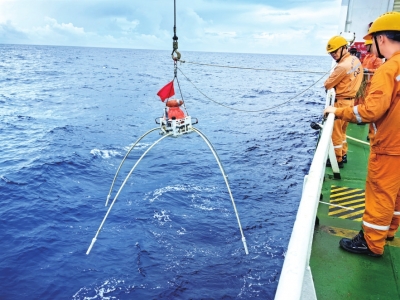 这项工作难在何处?宋来勇表示,首先需要研发适用于全海深的电磁采集及辅助回收装备。设备研发后,还面临海上作业难点,需首先摸清海试区域海底地形和底质情况,合理布设作业站位,确保设备安全布放、稳定坐底。设备安全回收也是重大挑战,为确保成功,特别加装了AIS示位和北斗定位装置。