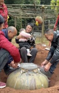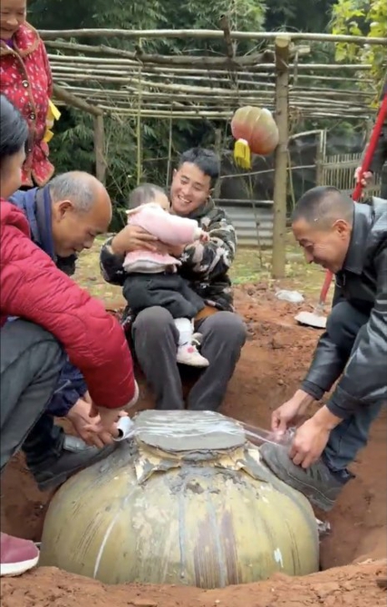 “一上午挖了个大坑,把500斤酒坛抬进去,用水泥和胶纸严严实实封好,就等18年后女儿成年那天打开!”近日,自贡市荣县29岁男子何建东(网名何咚咚)给周岁女儿封藏“女儿红”的视频在网络上引发热议,既有人羡慕这份深沉的父爱,也有人质疑“地里埋18年的酒能不能喝”。