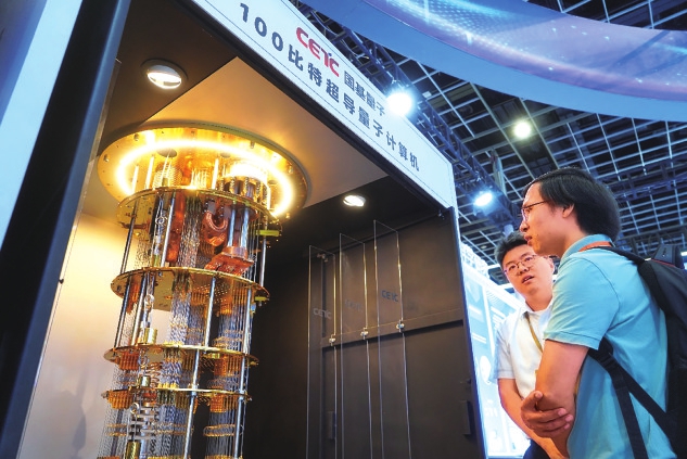 2025江苏产学研合作对接大会上,观众在参观100比特超导量子计算机。