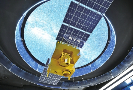安徽合肥中电信量子信息科技集团有限公司科技体验馆内的“墨子号”量子卫星模型。