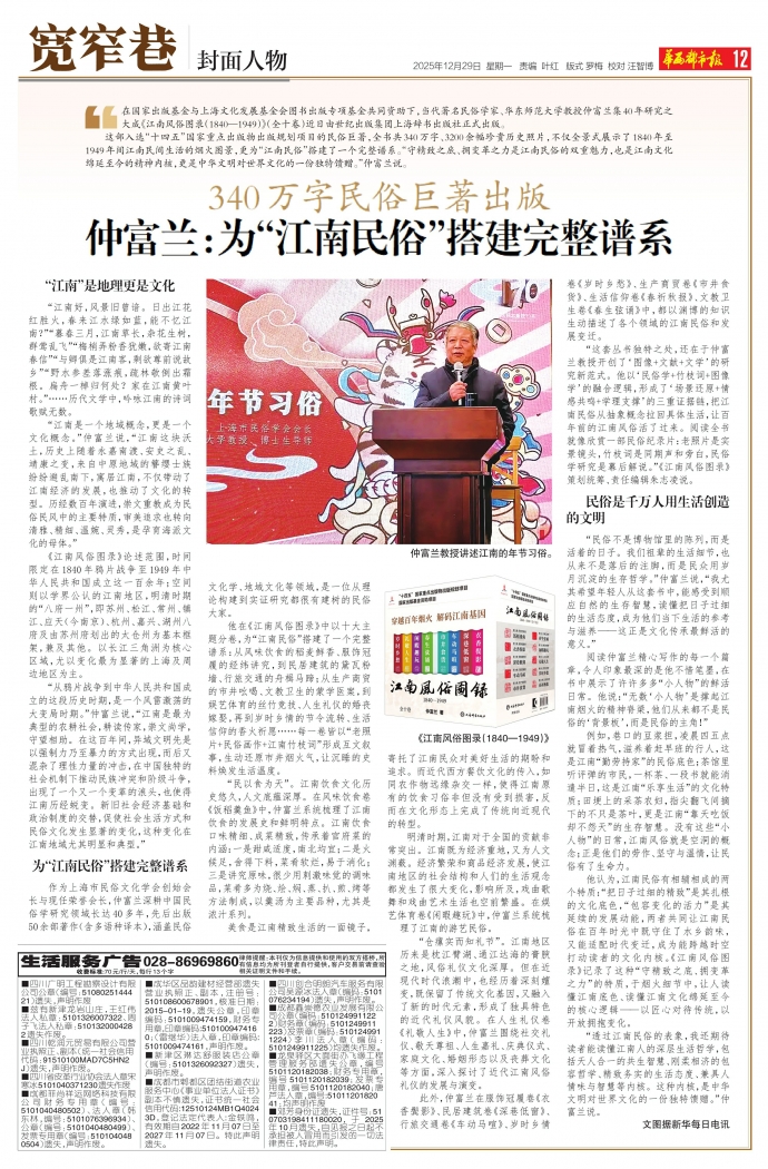 “民俗不是博物馆里的陈列,而是活着的日子。我们祖辈的生活细节,也从来不是落后的注脚,而是民众用岁月沉淀的生存哲学。”仲富兰说,“我尤其希望年轻人从这套书中,能感受到顺应自然的生存智慧,读懂把日子过细的生活态度,成为他们当下生活的参考与滋养——这正是文化传承最鲜活的意义。”