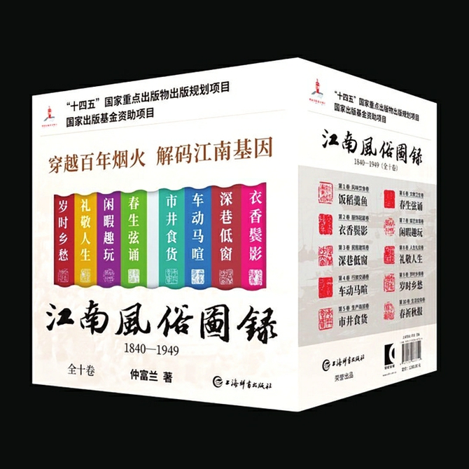 在国家出版基金与上海文化发展基金会图书出版专项基金共同资助下,当代著名民俗学家、华东师范大学教授仲富兰集40年研究之大成《江南风俗图录(1840—1949)》(全十卷)近日由世纪出版集团上海辞书出版社正式出版。