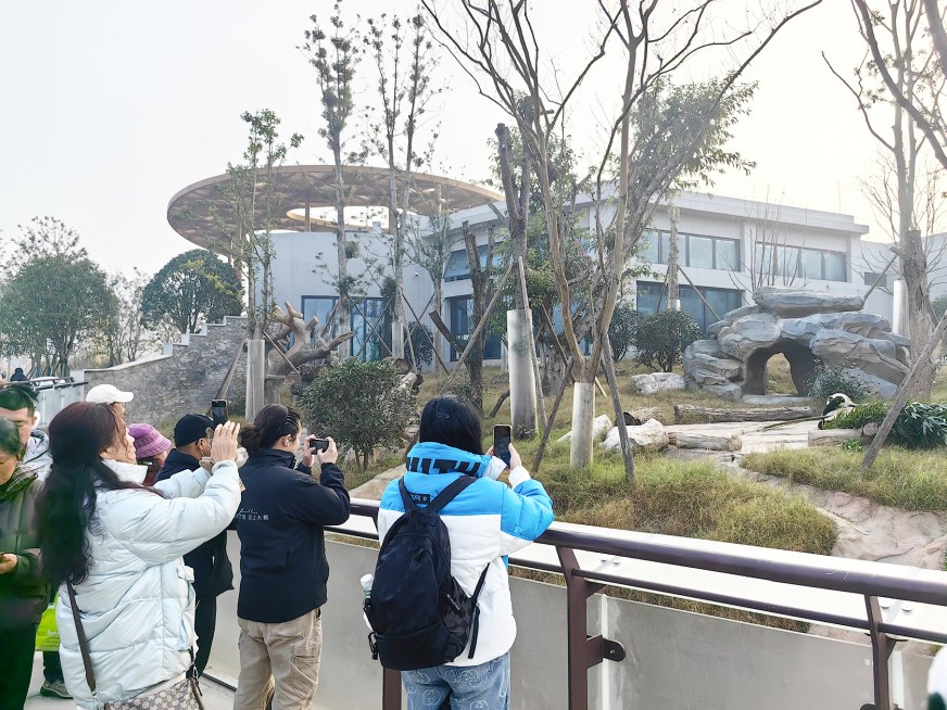 绵阳中华大熊猫苑试运营第一天,游客来打卡。