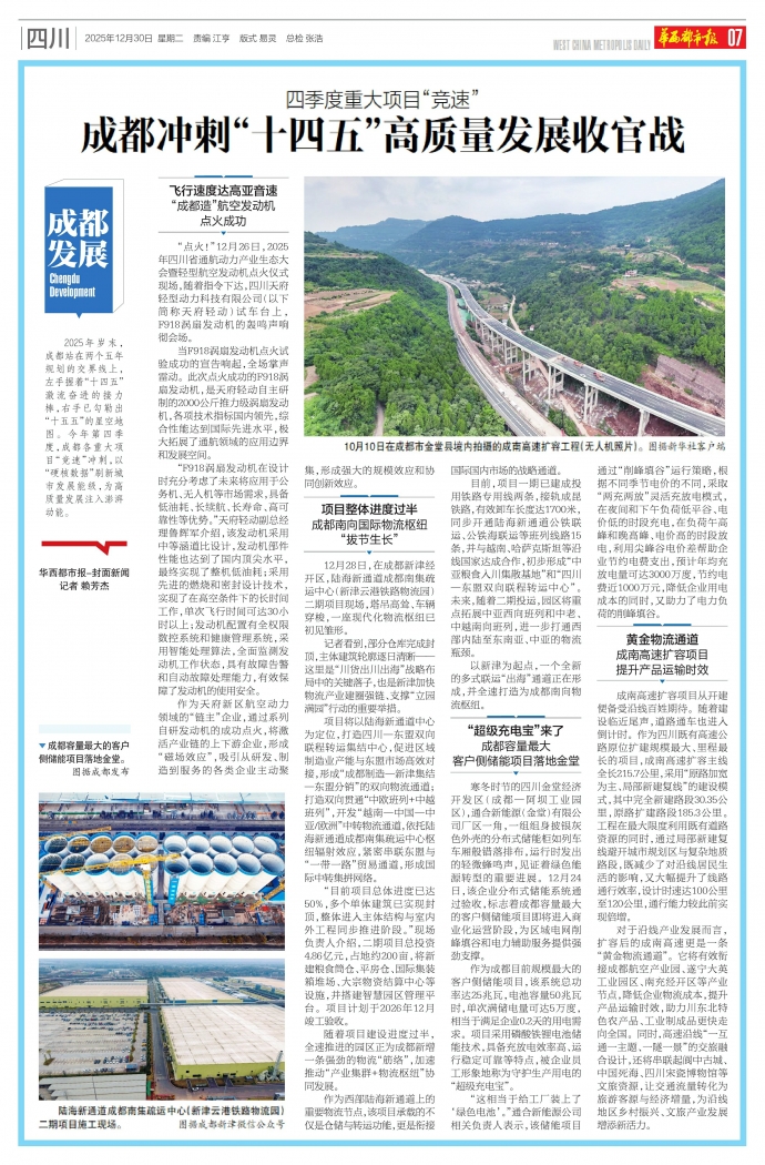2025年岁末,成都站在两个五年规划的交界线上,左手握着“十四五”激流奋进的接力棒,右手已勾勒出“十五五”的星空地图。今年第四季度,成都各重大项目“竞速”冲刺,以“硬核数据”刷新城市发展能级,为高质量发展注入澎湃动能。