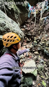 12月26日,“渔猎齐哥”在湖北探访溶洞污染。 视频截图