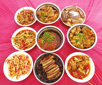 “九大碗”少不了东坡肘子这道菜。图据简阳文旅