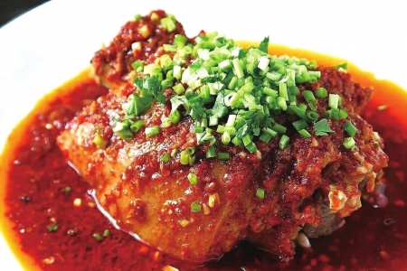 最后的调味堪称点睛之笔:将姜蒜剁细,豆瓣酱精心炒制,配以糖、醋、酱油、花椒等十数种调料,融入原汤调制成复合味汁。然后将滚热的味汁浇淋在炖好的肘子上,瞬间激发醇厚香气。成菜色泽红亮,口感咸鲜微甜,姜香突出,虽属川菜却不过分麻辣,完美诠释了“一菜一格”的烹饪哲学。