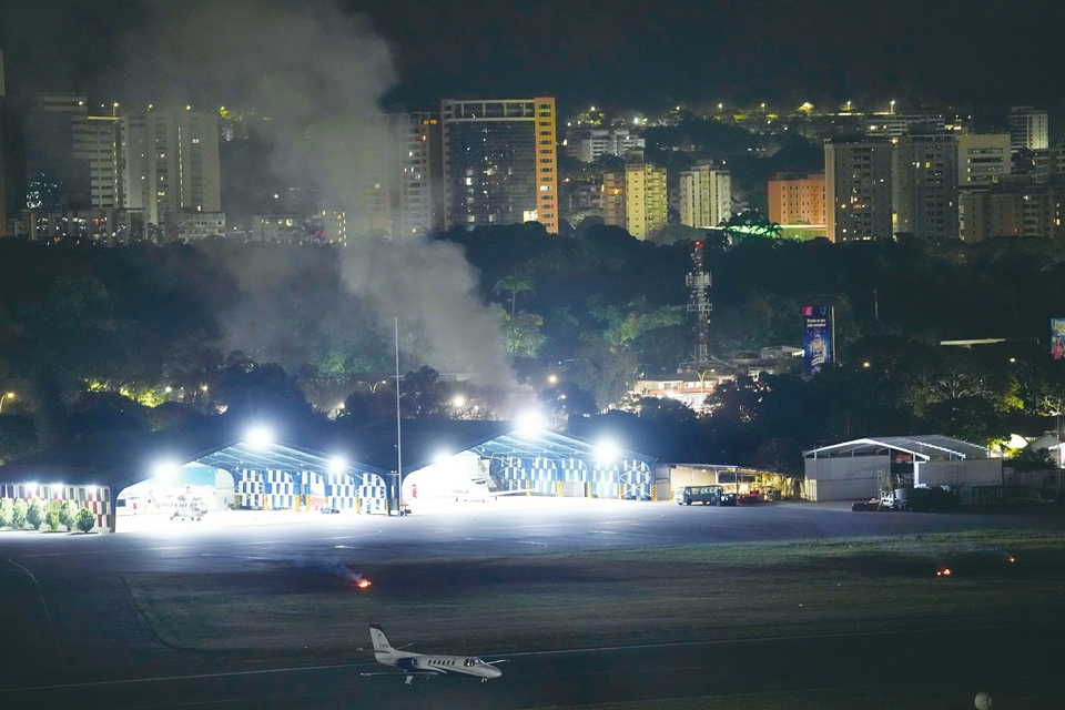 1月3日,委内瑞拉首都加拉加斯拉卡洛塔机场升起浓烟。 新华社发