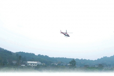 沃飞长空运营的直升机从四川安岳石窟数展中心起飞。