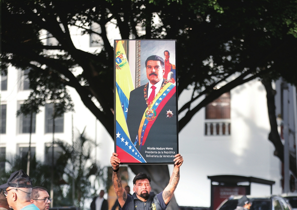 1月3日,民众在委内瑞拉首都加拉加斯的总统府附近抗议。 新华社发