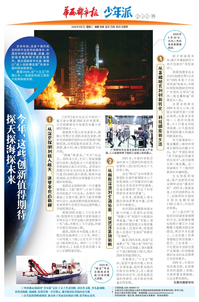 2026年,中国科技加速创新,在探索未知的道路上奔跑,为高质量发展赋能,让生活更加美好。