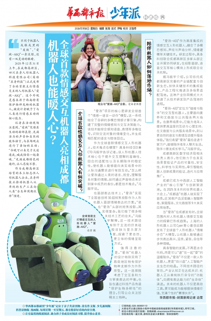 具身智能的发展,不再是冰冷代码,而是可以“逮”住一起“耍”的温暖陪伴。“爱湫”不仅是一款人形机器人,更是“四川造”人工智能产业生态的结晶。不同技术路径的背后,产业认知正在达成共识:机器人正从单纯执行命令的“功能体”,向拥有表达能力的“生命体”演进。未来的机器人不仅是高效工具,更可能成为能够提供情绪价值、充满个性的“赛博伙伴”。