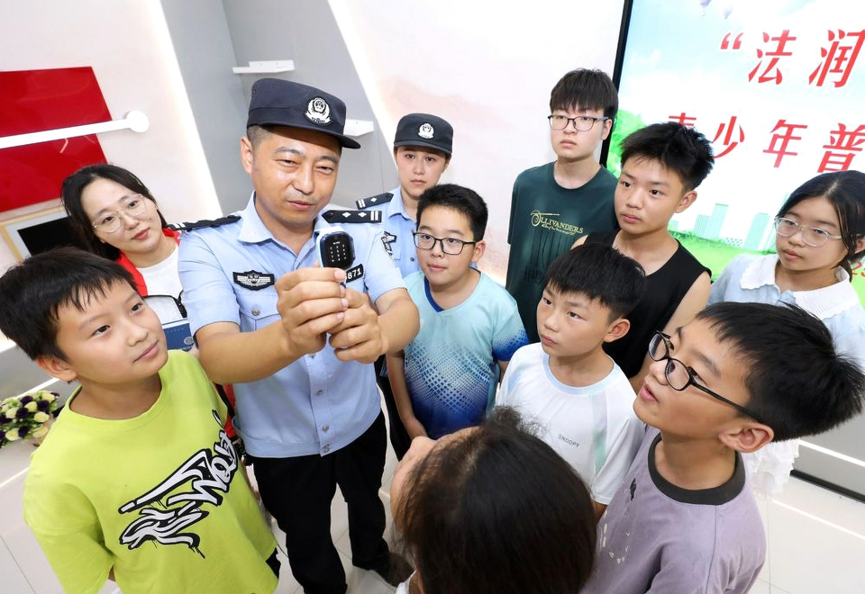 民警为孩子讲解防电信网络诈骗知识。图据新华社客户端