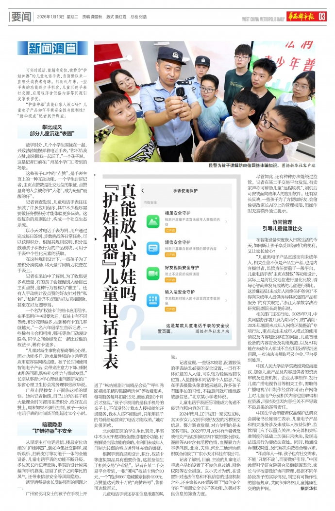 可实时通话、能精准定位,被称为“护娃神器”的儿童电话手表,自面世以来一直颇受消费者青睐。然而近年来,一些手表的功能逐步手机化,儿童沉迷手表社交圈、应用程序含低俗内容等问题引发家长担忧。