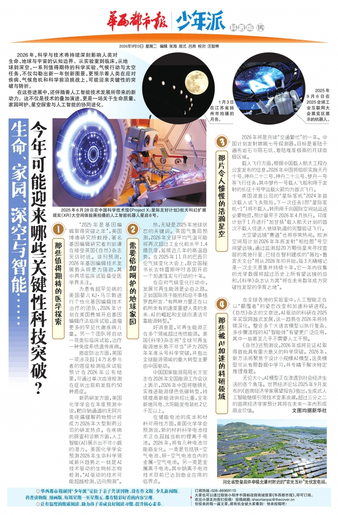 2026年,科学与技术将持续深刻影响人类对生命、地球与宇宙的认知边界。从实验室到临床,从地球到深空,一系列值得期待的科学实验、气候行动与太空任务,不仅勾勒出新一年创新图景,更预示着人类在应对疾病、气候危机和科学前沿挑战上,可能迎来关键性的突破与转折。