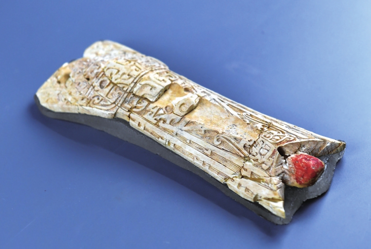 陕西清涧瓦窑沟墓地出土的雕花象牙器。