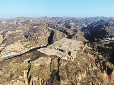 陕西清涧寨沟遗址寨塬盖夯土建筑群。