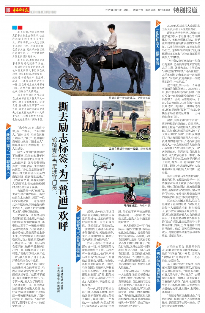 这个青年的网名叫马尚在,是成都信息工程大学大一学生,也是自媒体博主。流量之外,他的镜头记录下了一种可能:即使身体的困境未曾消失,但在友谊的托举与个人的勇气之下,轮椅上的方寸之地,也能抵达生活的广阔与丰盈。