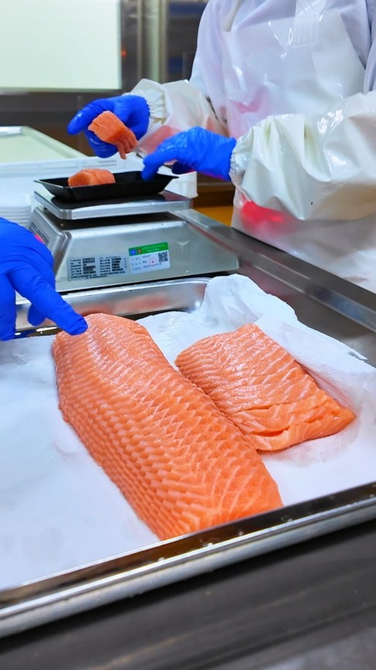 “传统渠道,从源头到消费者餐桌上,中间周转多、耗时长,保鲜温度也难全程保证。”首农供应链科技(成都)有限公司副总经理马小刚说,他们的秘诀在于缩短中间环节:从国外养殖网箱直接采购,经空运抵达双流机场,清关、运输入厂、加工一气呵成。这意味着,从捕捞到加工,时间被压缩至以小时计算。