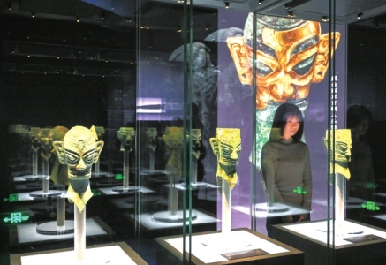 到达目的地后,就要开始布展工作。成都金沙遗址博物馆还专门选派具有丰富布展经验的专业人员赴京,全程参与布展。布展收尾后,金沙遗址博物馆和借展方会一起给展柜封柜。