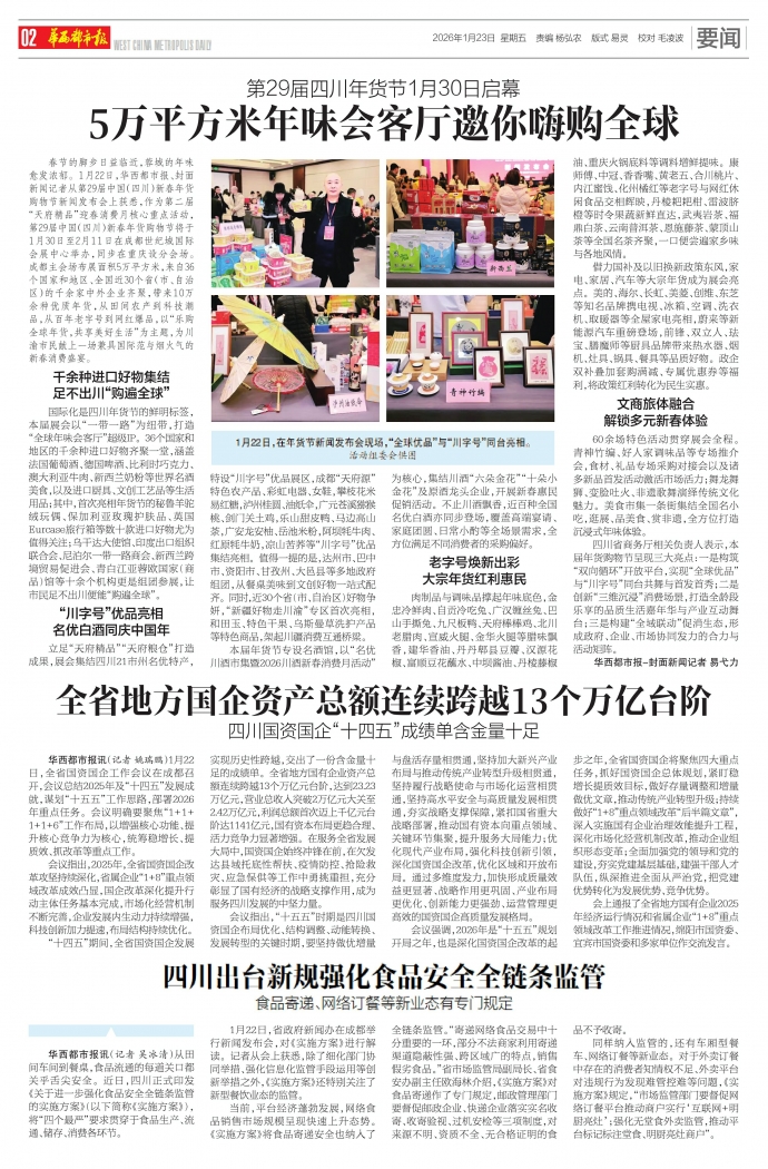 华西都市报讯(记者 姚瑞鹏)1月22日,全省国资国企工作会议在成都召开,会议总结2025年及“十四五”发展成就,谋划“十五五”工作思路,部署2026年重点任务。会议明确要聚焦“1+1+ 1+1+6”工作布局,以增强核心功能、提升核心竞争力为核心,统筹稳增长、提质效、抓改革等重点工作。
