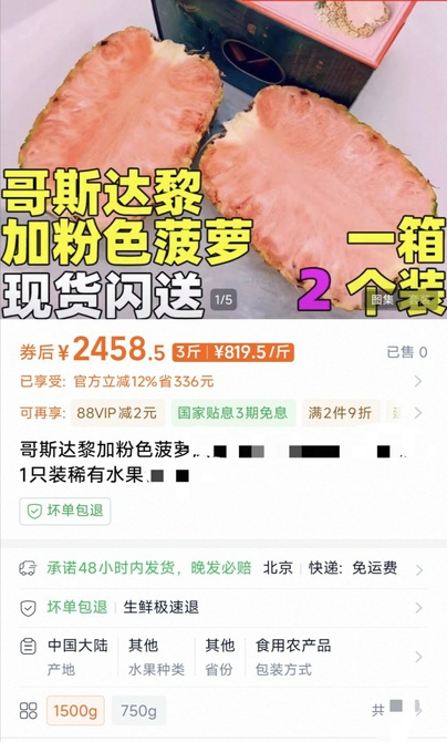 粉色菠萝在电商平台最高价每颗超千元。 电商平台截图
