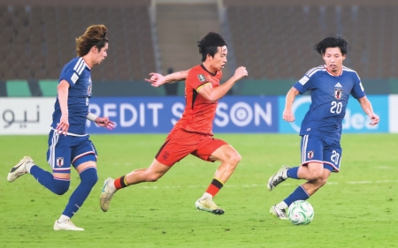 1月24日,中国队球员李镇全(中)与日本队球员古谷柊介(右)和大关友翔在比赛中拼抢。 新华社发