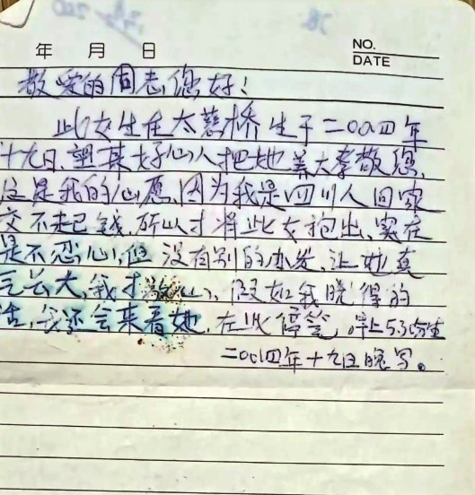 “如果不是女儿生病,或许我会等到要永远离开她的时候,才把身世秘密告诉她。”姚女士说,小瑶并不是他们的亲生女儿,找到小瑶的亲生父母或兄弟姐妹进行配型,是眼下最佳的途径。然而,线索仅有当年亲生父母留在女儿襁褓中的一封泛黄的手写信。信中透露,小瑶2004年2月9日生于贵州太慈桥,亲生父母是四川人,“回家交不起钱,所以才将此女抱出,实在是不忍心……”。