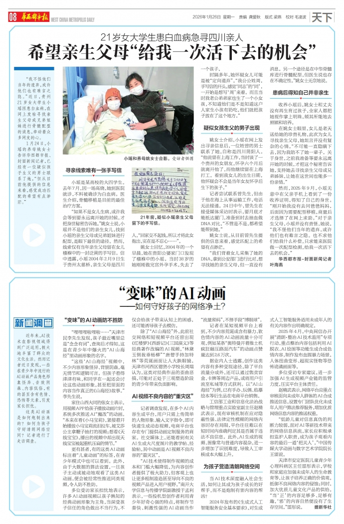 “低龄儿童对信息真伪的判断力较弱,面对AI等新技术带来的网络信息洪流,家长应积极承担监护人职责,成为孩子观看内容的最后一道‘把关人’。”中国传媒大学动画与数字艺术学院院长王雷说。