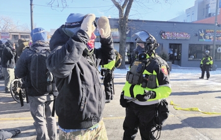 这是1月24日在美国明尼苏达州明尼阿波利斯市拍摄的示威抗议现场。
