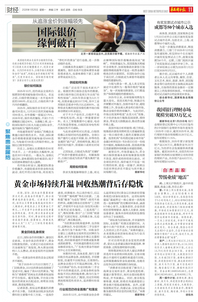 近期,国际、国内金价屡屡刷新历史纪录,在高金价刺激下,部分消费者选择高位套现。记者采访了解到,深圳水贝等黄金集散地回收档口人潮涌动,单笔卖出上百克黄金已不鲜见,二手交易平台的黄金回收单量也持续走高。然而,部分卖金者也面临交易纠纷。同时,黄金回收过程中存在报价虚高、结算缩水、称重成色缩水以及“三无”上门回收导致维权困难等问题。