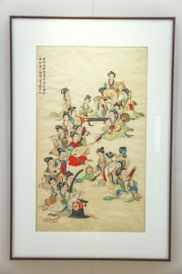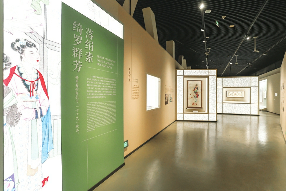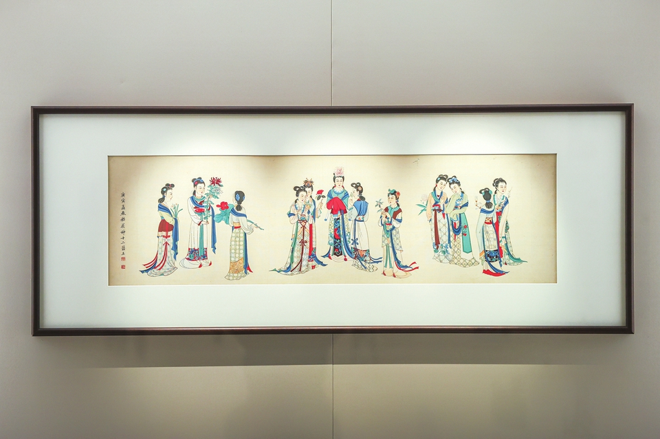从“绮罗群芳落绢素”,到“丹青万象通造化”,再到“晨昏不辍写千章”,展览分为三大单元,皆以赵蕴玉生前留下的诗句为题。其中,第一单元主要展出赵蕴玉学师、学古、出新的人物画作;第二单元则主要展出赵蕴玉的山水画与花鸟画;第三单元则是赵蕴玉的书法作品。