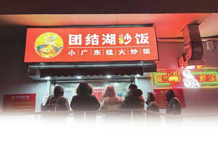 顾客在“团结湖猛火炒饭”老店前排队。戴云 摄