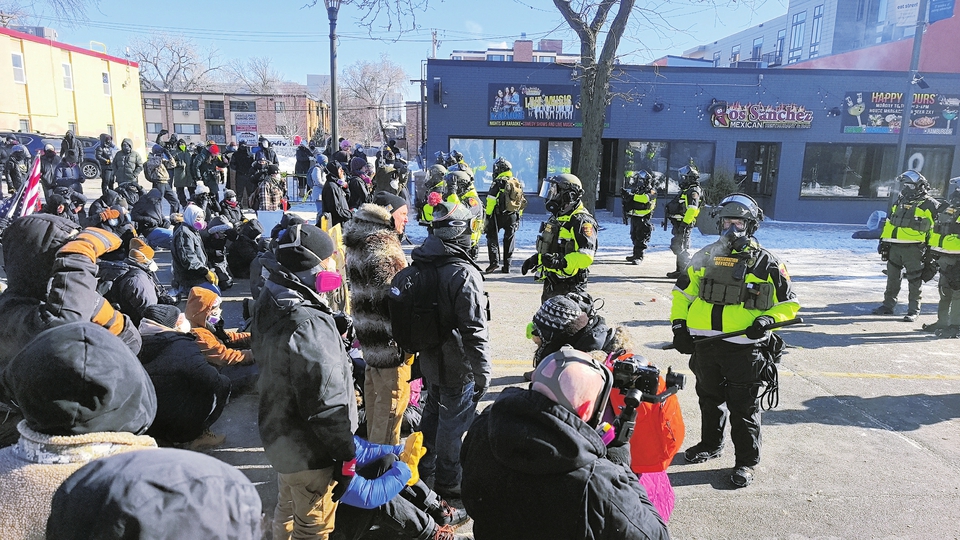 这是1月24日在美国明尼苏达州明尼阿波利斯市拍摄的示威抗议现场。新华社发