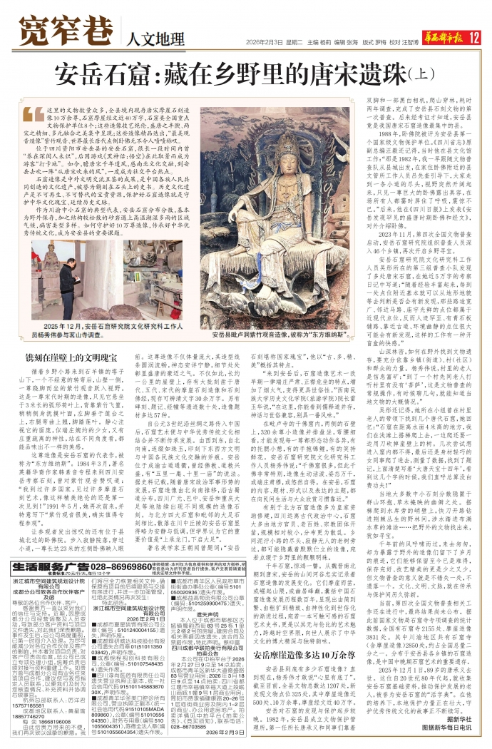 2025年12月1日,89岁的唐承义去世。这位自20世纪80年代起,就收集安岳石窟基础资料,推动保护发展的老人,被誉为安岳石窟的“活字典”。在他的培养下,本地保护力量正在壮大,守护优秀传统文化的故事正不断续写。