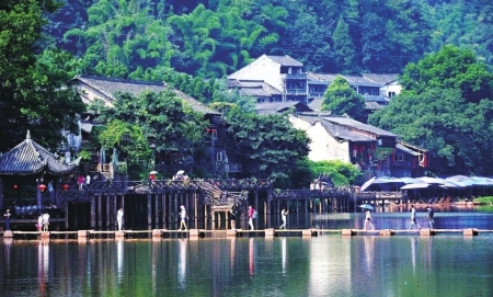 每年端午节,“抢鸿鸭”是最热闹的民俗活动。当地居民素有饲鸭传统,麻鸭在河中嬉水觅食,肉质紧实细嫩。几十只活蹦乱跳的麻鸭刚被放入河中,游客、居民便紧随其后,搏浪擒鸭,农耕文化的传统魅力在欢声笑语中延续。2019年,联合国教科文组织专家夜游柳江,惊叹其为“活着的传统”。正是因为这里的生活从未因保护而冻结,反而在双河环抱中,日日新生。