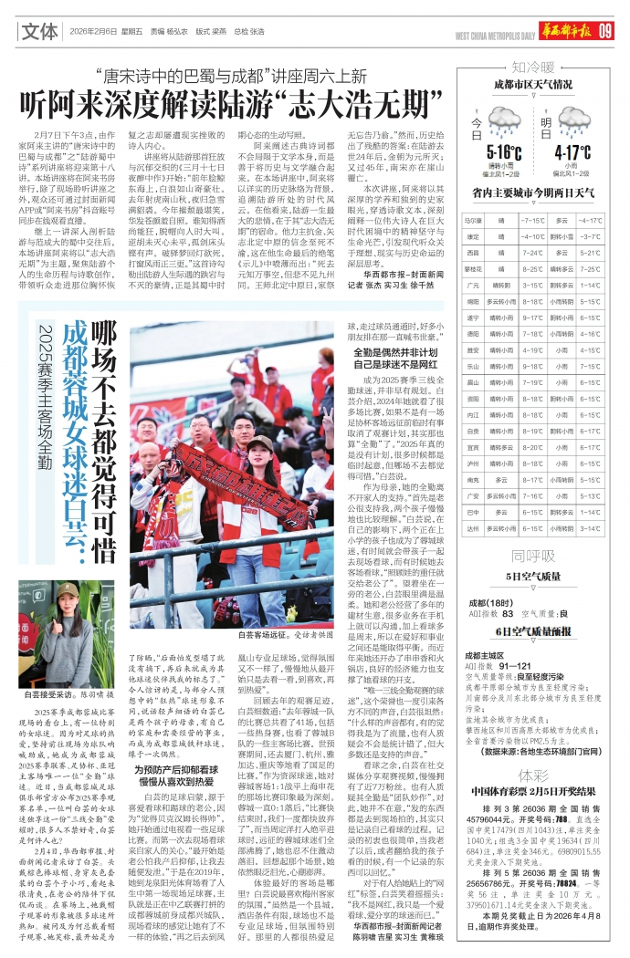 成都蓉城女球迷白芸:哪场不去都觉得可惜