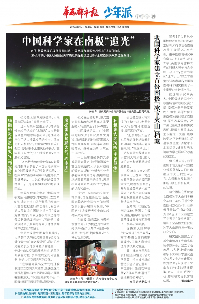 记者2月1日从中国极地研究中心获悉,截至目前,科学家已在南极冰盖下发现207座火山。由中国极地研究中心牵头,浙江大学、复旦大学、英国埃克塞特大学的科研人员参与合作的一项研究,首次为这些“冰下火山”建立了完整的“身份档案”,为国际南极科学研究提供了一个重要公共数据产品。