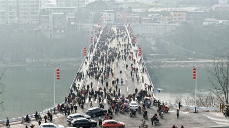 2月4日,大桥通车这天,四邻八乡的乡亲们扶老携幼赶来,只为见证这圆梦时刻。望着眼前宽阔平坦的桥面,大伙脸上都洋溢着幸福的喜悦。有人举起手机拍照留念,有人将视频发布到社交平台,告诉在外游子,家乡的桥通车了。