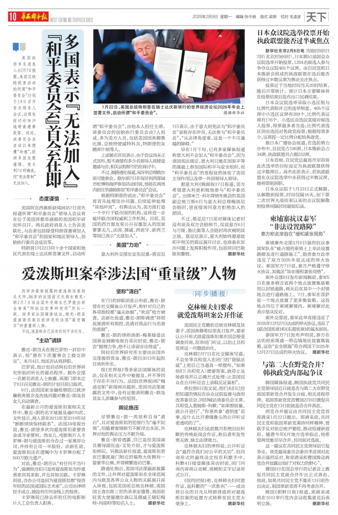 根据特朗普的说法,“和平委员会”将首先处理加沙问题,后续延伸处理“其他冲突”。有舆论认为,美方欲打造一个平行于联合国的机构,这将进一步破坏联合国权威和工作机制。目前,美国的西方盟友里公开应邀加入的国家寥寥无几,法国、挪威、西班牙、新西兰等国已表示“无意加入”。